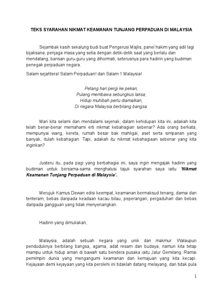 Pelbagai usaha dilaksanakan bagi menggalakkan proses integrasi bangsa melalui sistem pendidikan negara. Adalah teks syarahan pemenang pertandingan syarahan bahasa malaysia sekolah. Teks syarahan perpaduan asas kecemerlangan negara berikut adalah teks syarahan pemenang pertandingan syarahan bahasa malaysia sekolah saya.